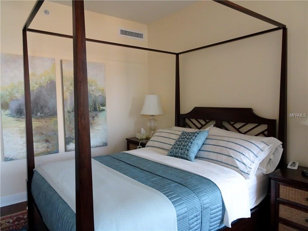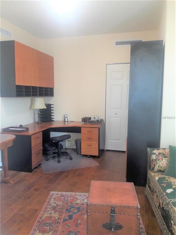 SEASONAL – Downtown 2 bed / 2 bath condo in a stunning contemporary high rise building. There is also a spacious den/office with a double pullout for an overnight guest. The panoramic floor to ceiling living room windows and large balcony, a perfect spot for your morning coffee, overlook the beautiful, wooded, historic neighborhood of Laurel Park and artist colony of Towles Court. There is another private terrace off the guest bedroom. Walking distance to an array of entertainment, shopping, restaurants and Payne Park with its 12 beautifully maintained Har-Tru tennis courts. The concierge staffed building offers swimming, jacuzzi and a state of the art workout gym. There is a gas grill and outdoor dining options. Bicycle storage is on the ground floor for easy access as well as kayak storage. The rent includes bi-weekly cleaning service, leaving you free to fully enjoy the wonderfully convenient downtown Sarasota lifestyle. Call for off-season rates and availability. AVAILABLE FOR HIGH SEASON 2021.